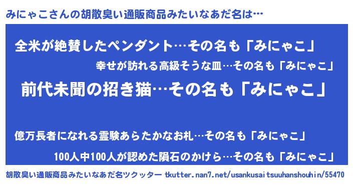 | ヘコむあだ名 | 『みにゃこ(笑)』『みにぷりん』 |