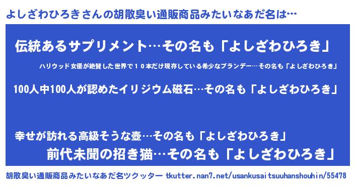 | ヘコむあだ名 | 『よしっぺ』『よしざわひろき(笑)』 |