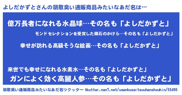 | 肩書あだ名 | 『よしだかずと総理大臣』 |