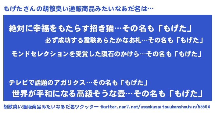 | ヘコむあだ名 | 『もげた(震え声)』『牛乳』 |