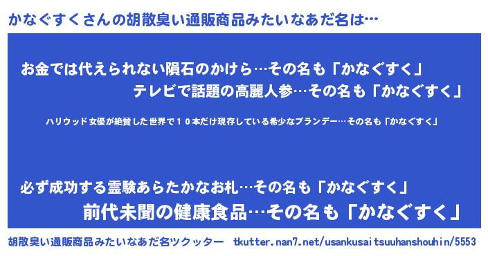 | 男性向けラノベタイトル風あだ名 | 『魔弾の王とかなぐすく』 |