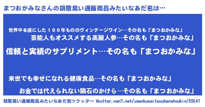| ヘコむあだ名 | 『まつお』『まつおかみな(笑)』 |