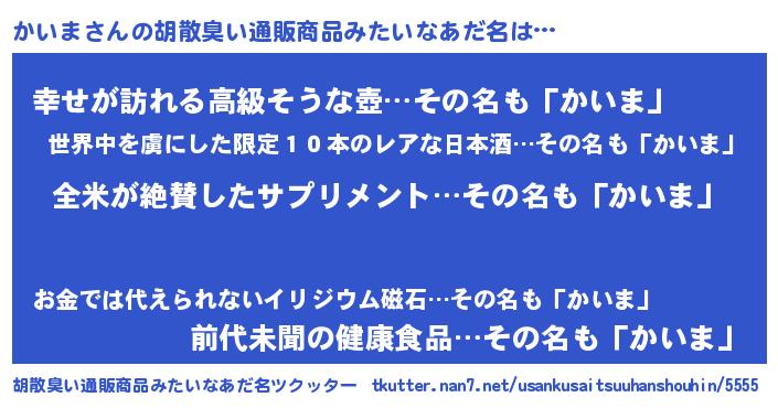 | 意味不明あだ名 | 『とにかく怪しいかいま』 |
