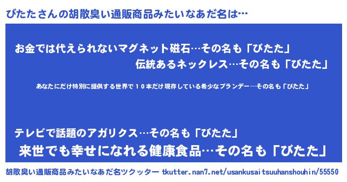 | ヘコむあだ名 | 『びたた(震え声)』『びた太郎』 |