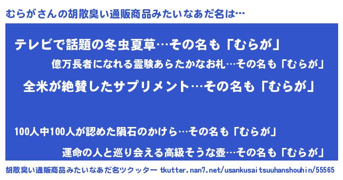 | 意味不明あだ名 | 『とにかく怪しいむらが』『自称むらが』 |
