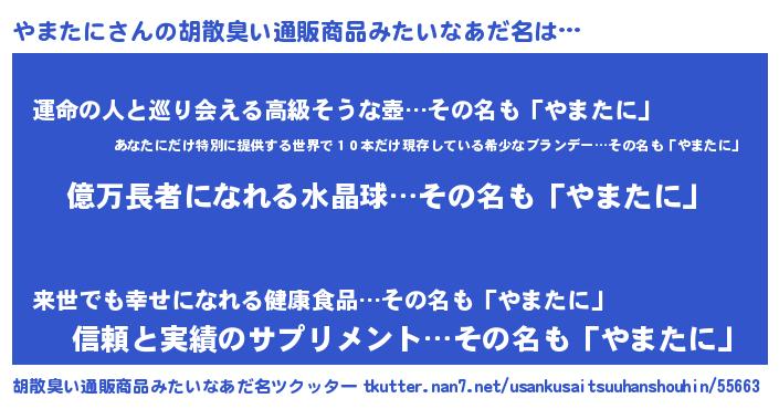 | 男性向けラノベタイトル風あだ名 | 『やまたに~年齢イコール彼女いない歴の魔法使い~』 |