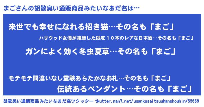 | ヘコむあだ名 | 『まご(遠い目)』『まごを』 |