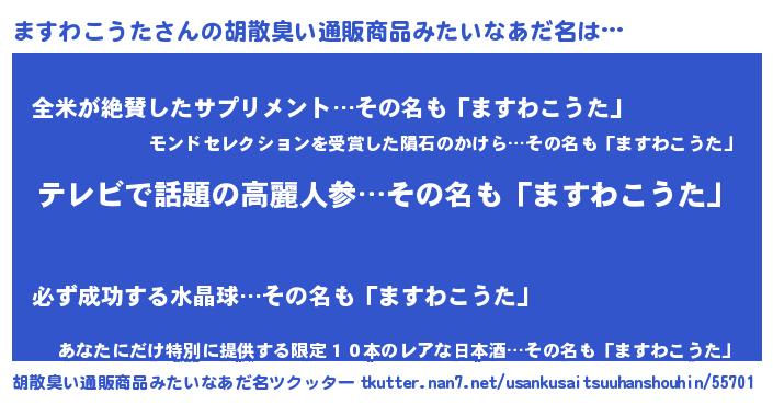 | 欧米人風あだ名 | 『ますわこうた・ステッグマイヤー』 |