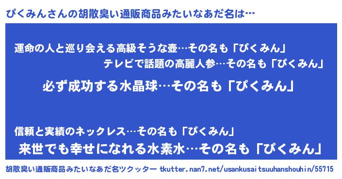 | 意味不明あだ名 | 『ペロリンぴくみん』『永久保存ぴくみん』 |