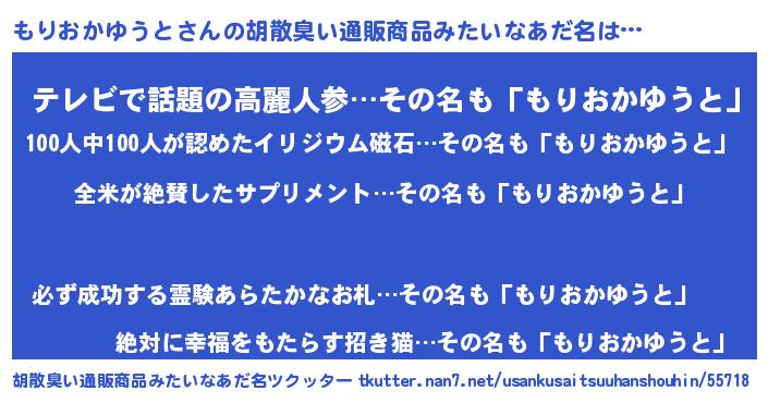 | 意味不明あだ名 | 『とにかく怪しいもりおかゆうと』 |
