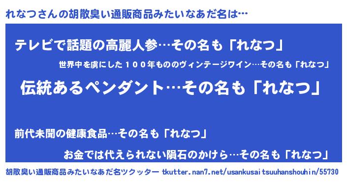 | ヘコむあだ名 | 『れなっぺ』『れなつ(小並感)』 |