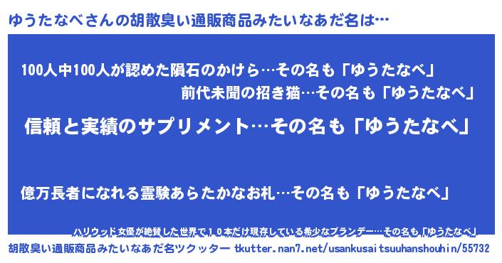 | ヘコむあだ名 | 『ゆうお』『ゆうたなべ(苦笑)』 |