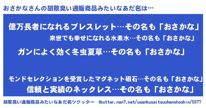 | 意味不明あだ名 | 『自称おさかな』『ペロリンおさかな』 |