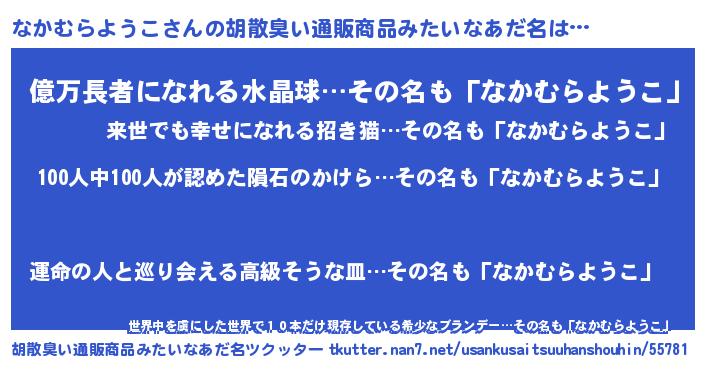 | 意味不明あだ名 | 『眠気覚ましガムなかむらようこ味』 |