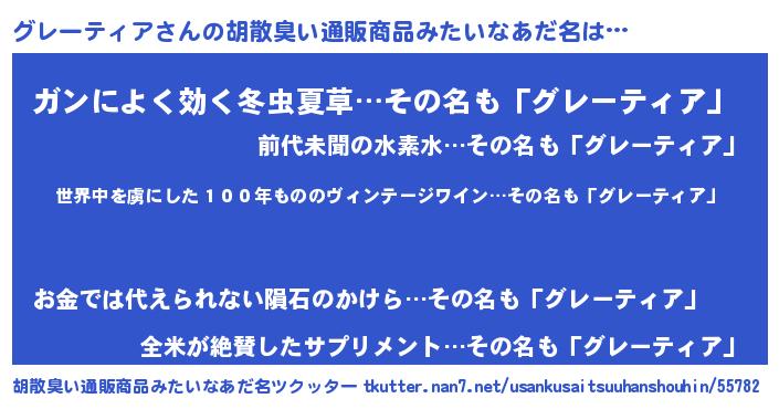 | 男性向けラノベタイトル風あだ名 | 『この素晴らしい世界にグレーティアを!』 |