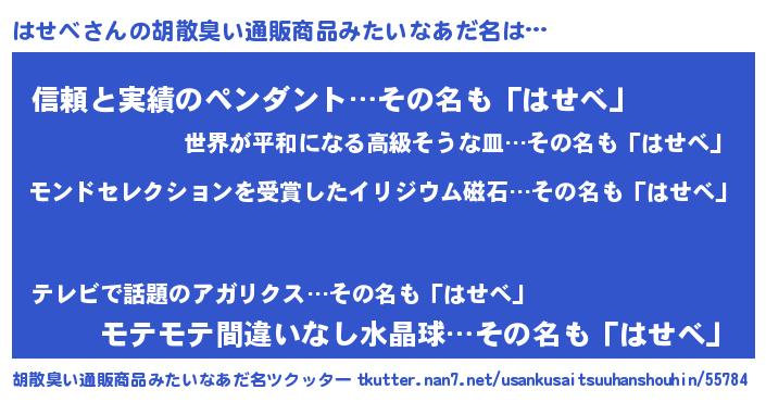 | 意味不明あだ名 | 『眠気覚ましガムはせべ味』 |