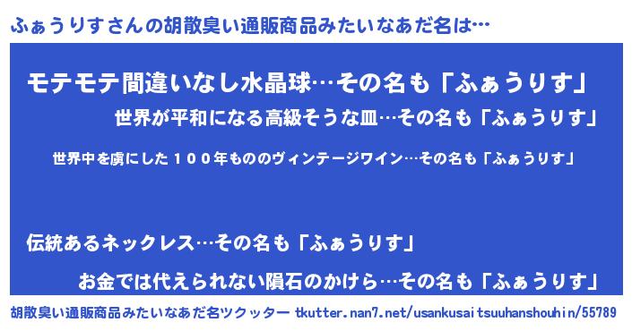意味不明あだ名 | 『住所不定無職ふぁうりす(3歳)』 |