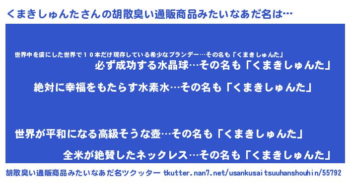 | 伝説のあだ名 | 『聞きしに勝る勇者くまきしゅんた』 |