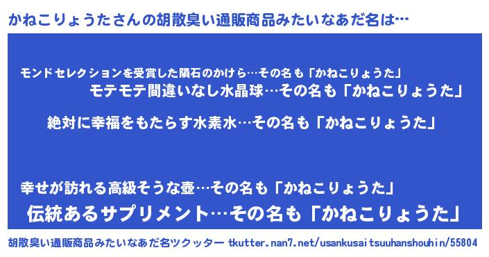 | 料理風あだ名 | 『かねこりょうたごはん』 |