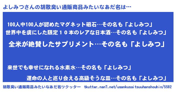 | 意味不明あだ名 | 『とにかく怪しいよしみつ』 |