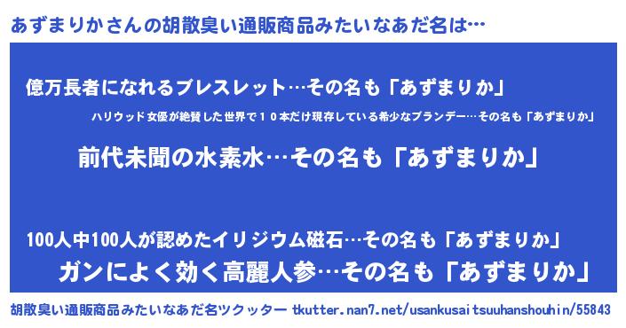 | 恥ずかしいあだ名 | 『あずちん』『プリティーあずまりか』 |