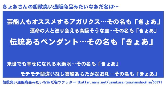 | ヘコむあだ名 | 『きょぷりん』『きょふぇ~』『豆乳』 |