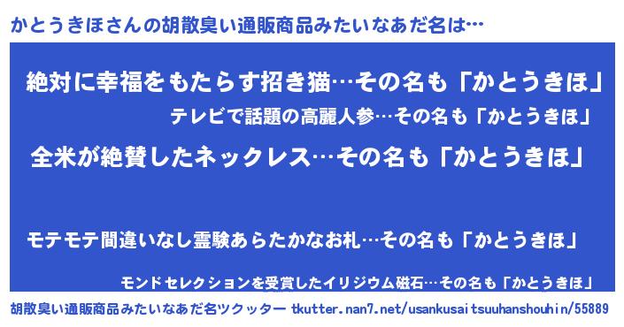 | 意味不明あだ名 | 『とにかく怪しいかとうきほ』 |