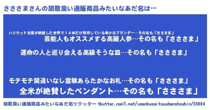 | 意味不明あだ名 | 『さささまフォーエバー』『自称さささま』 |