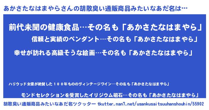 | 男性向けラノベタイトル風あだ名 | 『やはりあかさたなはまやらの青春ラブコメはまちがっている 』 |