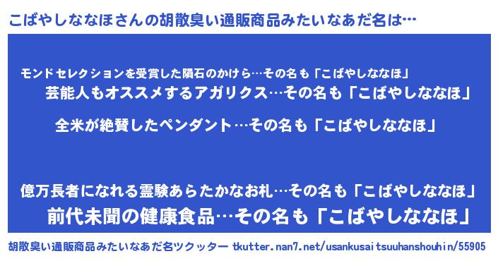こばやしななほさんの胡散臭い通販商品みたいなあだ名をツクッター!