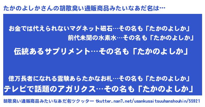 | ポケモン風あだ名 | 『タカキング』『ヒタカノヨシカ』 |