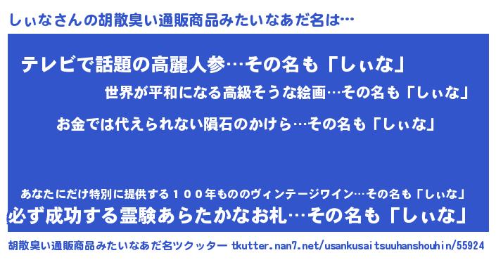 | ヒーロー風カッコイイあだ名 | 『愛の使者しぃな』『ウルトラ戦士シィナ』 |
