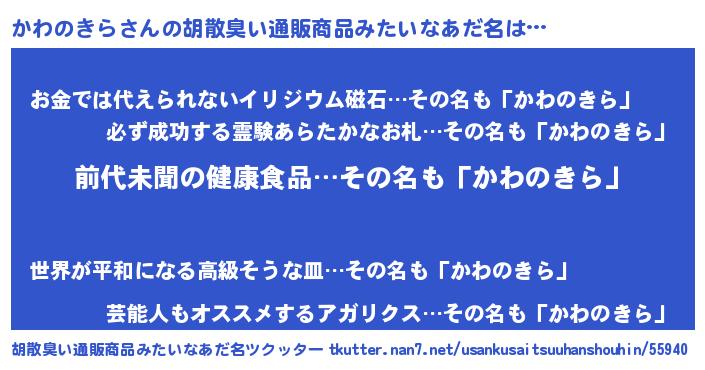 かわのきらさんの胡散臭い通販商品みたいなあだ名をツクッター!