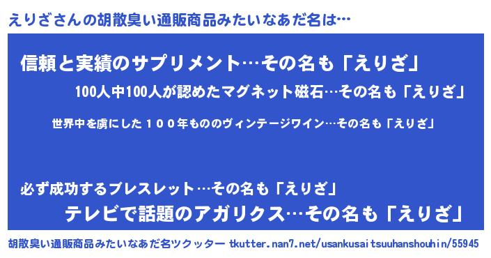 | 意味不明あだ名 | 『なめこ科えりざ属』『自称えりざ』 |