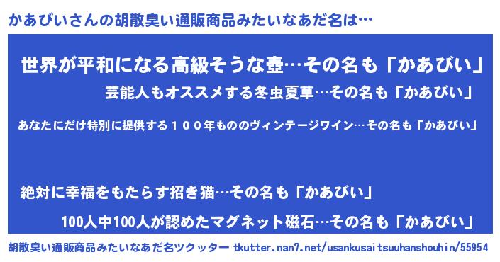 | 意味不明あだ名 | 『住所不定無職かあびい(9歳)』 |