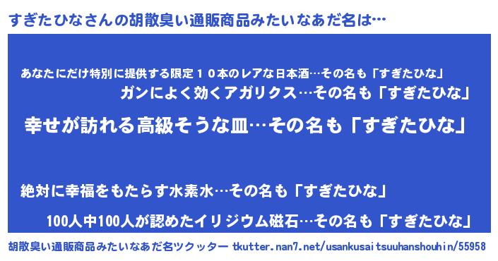 | 意味不明あだ名 | 『すぎたひなフォーエバー』 |