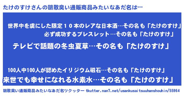 | 意味不明あだ名 | 『自称たけのすけ』『永久保存たけのすけ』 |