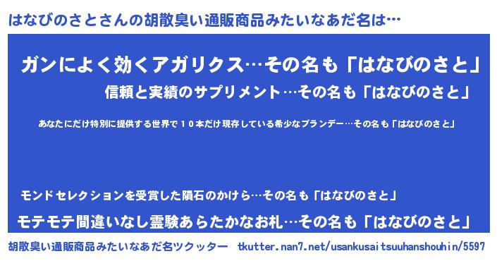 | 意味不明あだ名 | 『住所不定無職はなびのさと(95歳)』 |