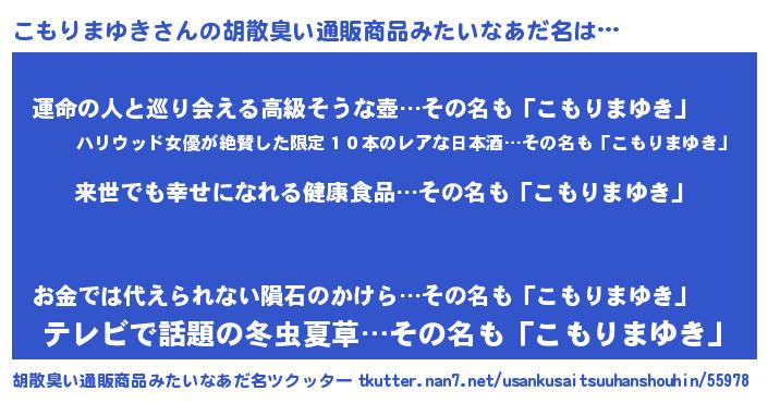 | 伝説のあだ名 | 『古より伝わる暗殺者こもりまゆき』 |