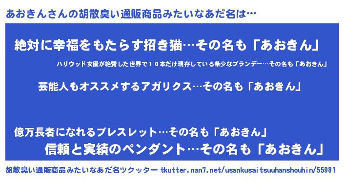| ヘコむあだ名 | 『あおきん(笑)』『あおお』 |