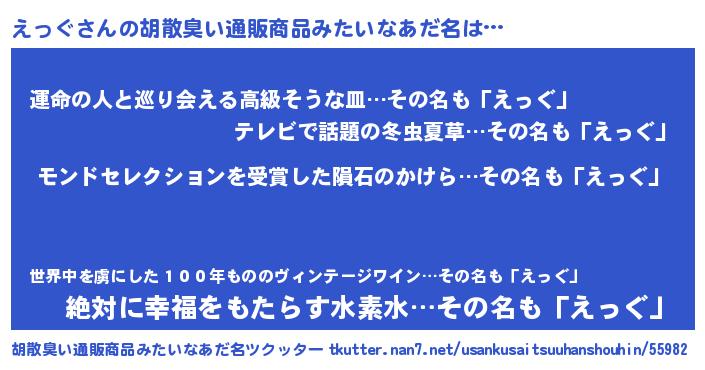 | ヘコむあだ名 | 『酢こんぶ』『えっぐ(苦笑)』 |