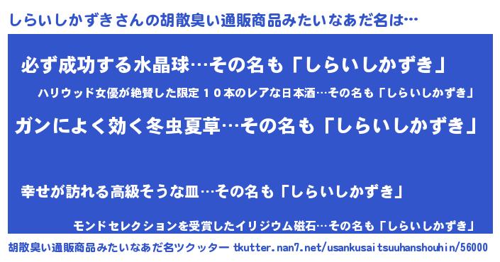| 意味不明あだ名 | 『自称しらいしかずき』 |