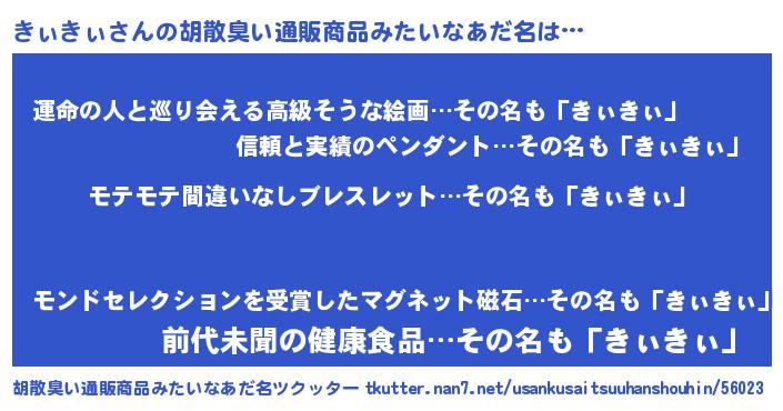 | 2回繰り返すあだ名 | 『きぃきぃ』『ききぃぃ』『こりこり』 |