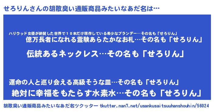 | 意味不明あだ名 | 『とにかく怪しいせろりん』 |