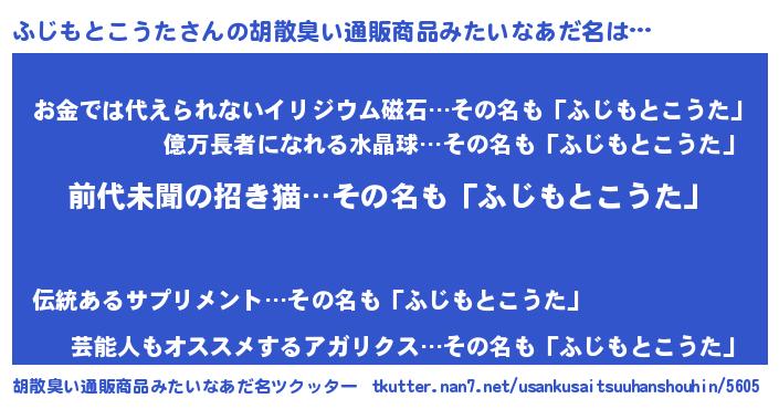 | ヘコむあだ名 | 『ふじもとこうた(笑)』『ふじにゅー』 |