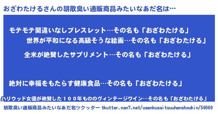 | 意味不明あだ名 | 『とにかく怪しいおざわたける』 |