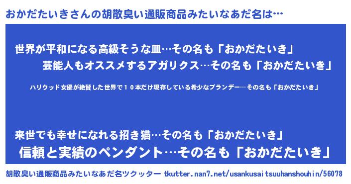 | 料理風あだ名 | 『おかだたいきのカルパッチョ風』 |