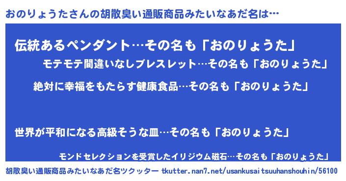 | 意味不明あだ名 | 『永久保存おのりょうた』 |