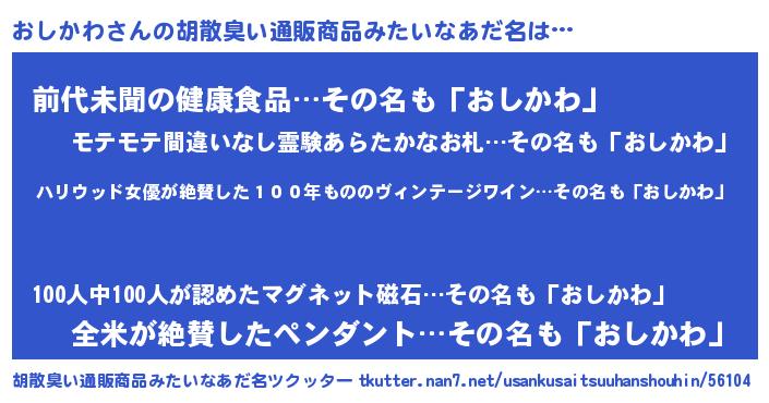 | ヘコむあだ名 | 『おしかわ(笑)』『おしっ子』『豆乳』 |
