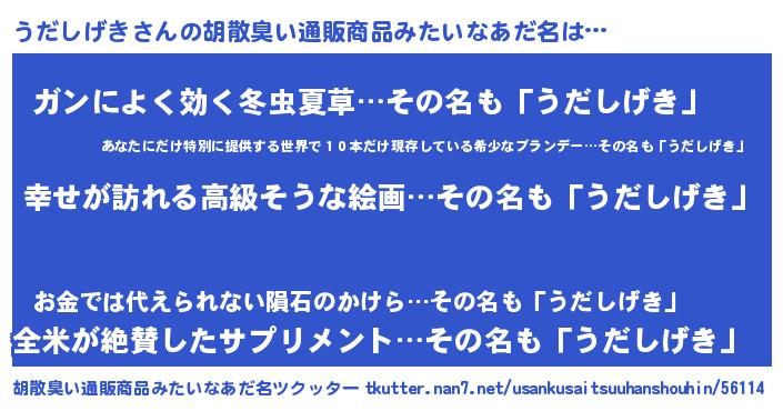 | 意味不明あだ名 | 『うだしげきフォーエバー』 |